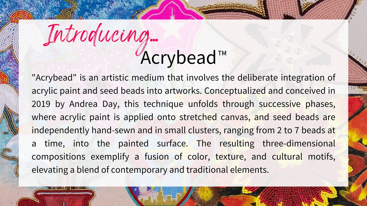Hand sewn beadwork, faceted glass beads, bugle beads, and acrylic on canvas,