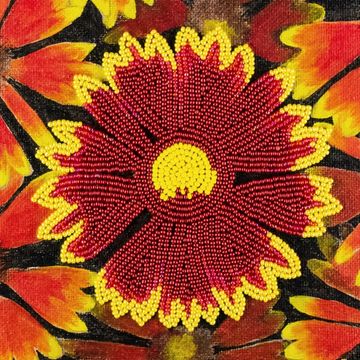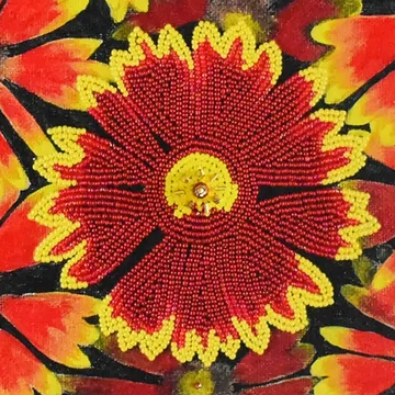 As an artist, I integrate acrylic painting with meticulously hand-sewn seed beads on stretched canvas, using my self-developed medium, Acrybead™. My upbringing in Oklahoma as well as living and performing in New York City for 14 years profoundly influence my artistic practice. Inspired by the resilience of nature and the energy of urban life, my work challenges and reshapes perceptions of First American art. By incorporating both Mvskoke and machine languages, I create a fusion reflecting the complexity of contemporary Native identity.
